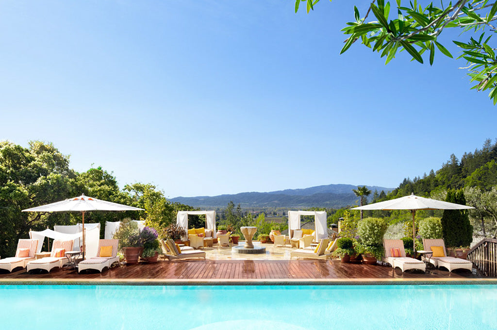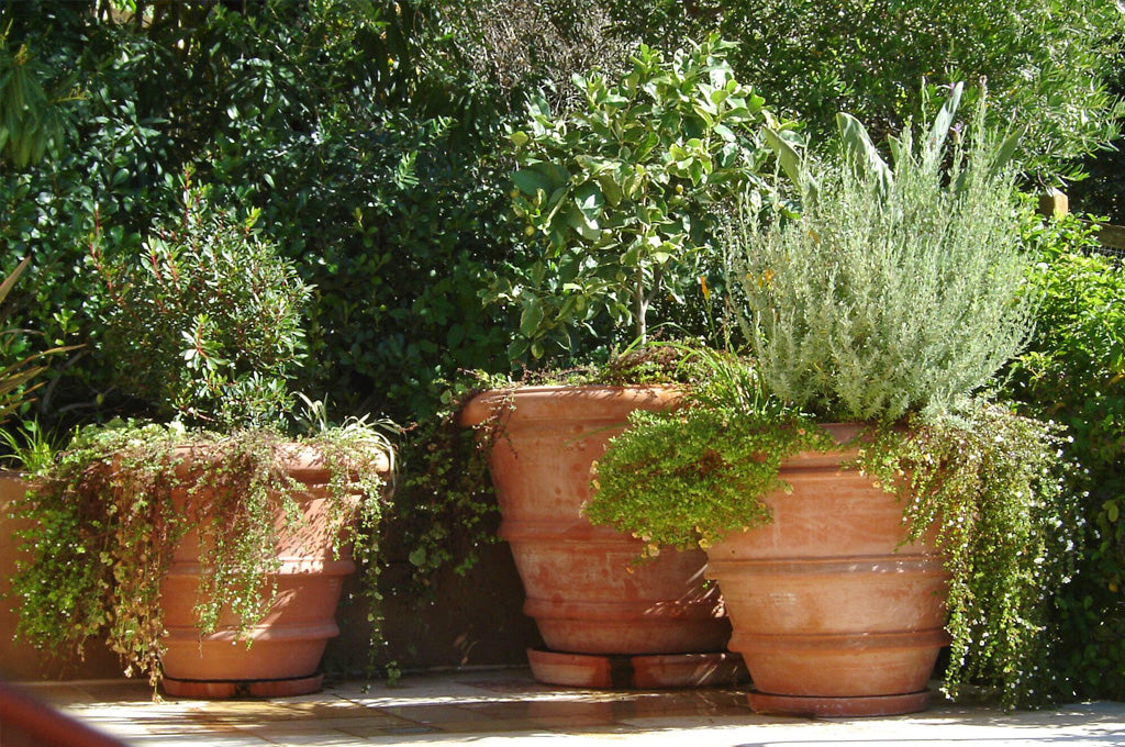 Perched high above the Napa Valley lies the soft-spoken luxury of Auberge du Soleil. This Mediterranean inspired property nestled in a 33 acre olive grove with sweeping vineyard views, meandering paths, dappled sunlight, and age-old olive trees is reminiscent of the hills of Tuscany and is a perfect setting for Seibert & Rice terra cotta pots.