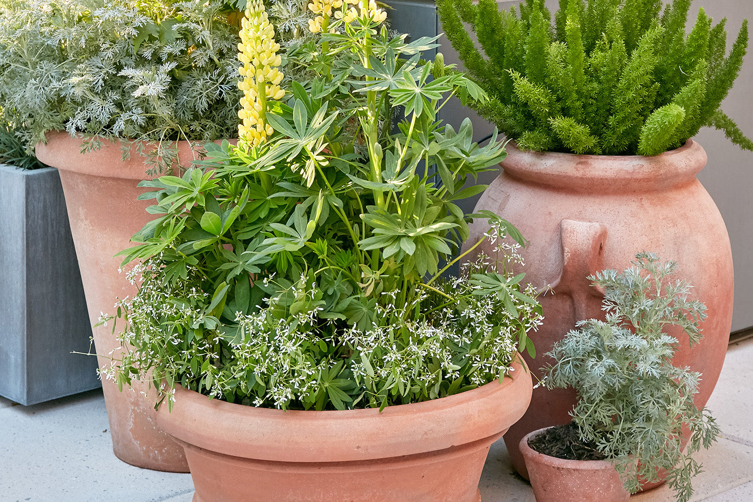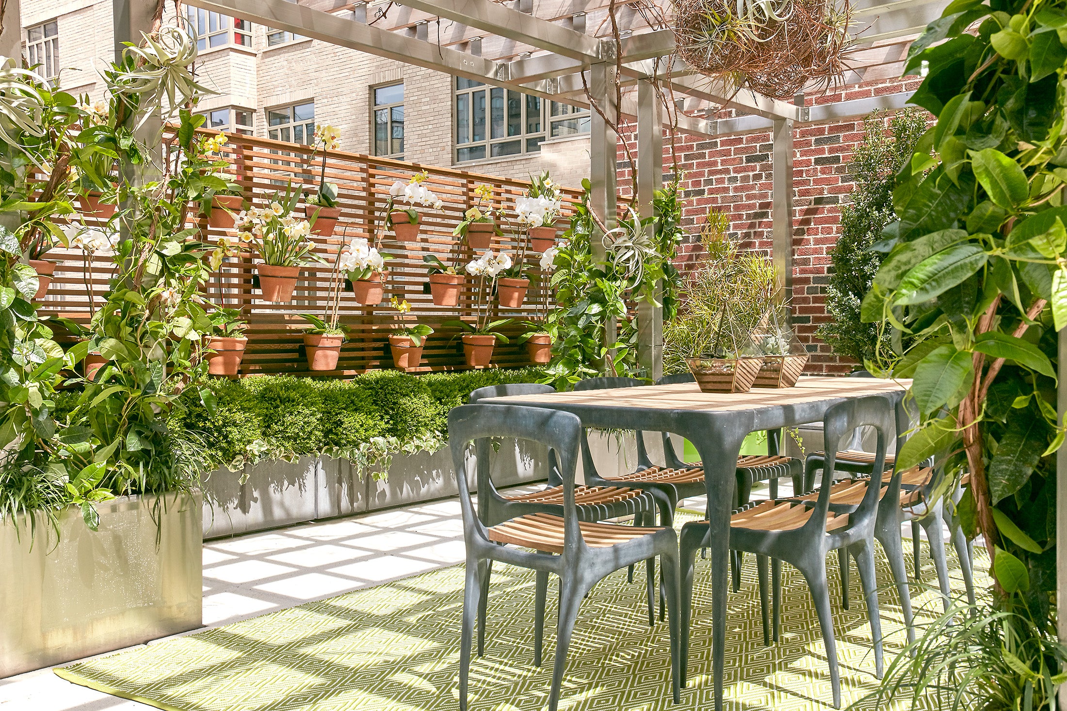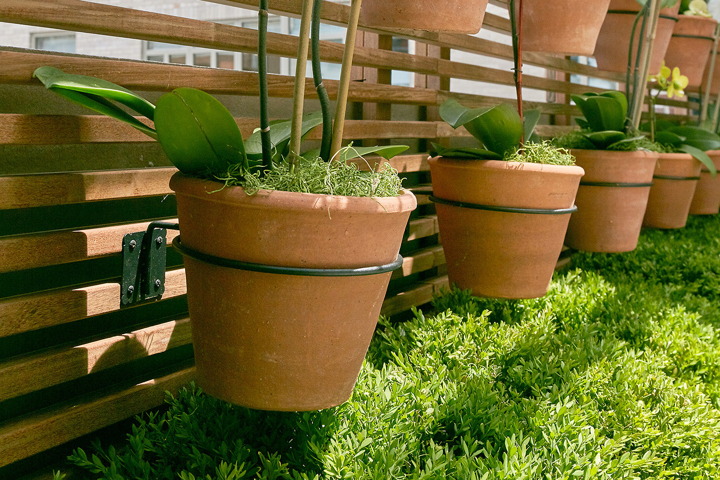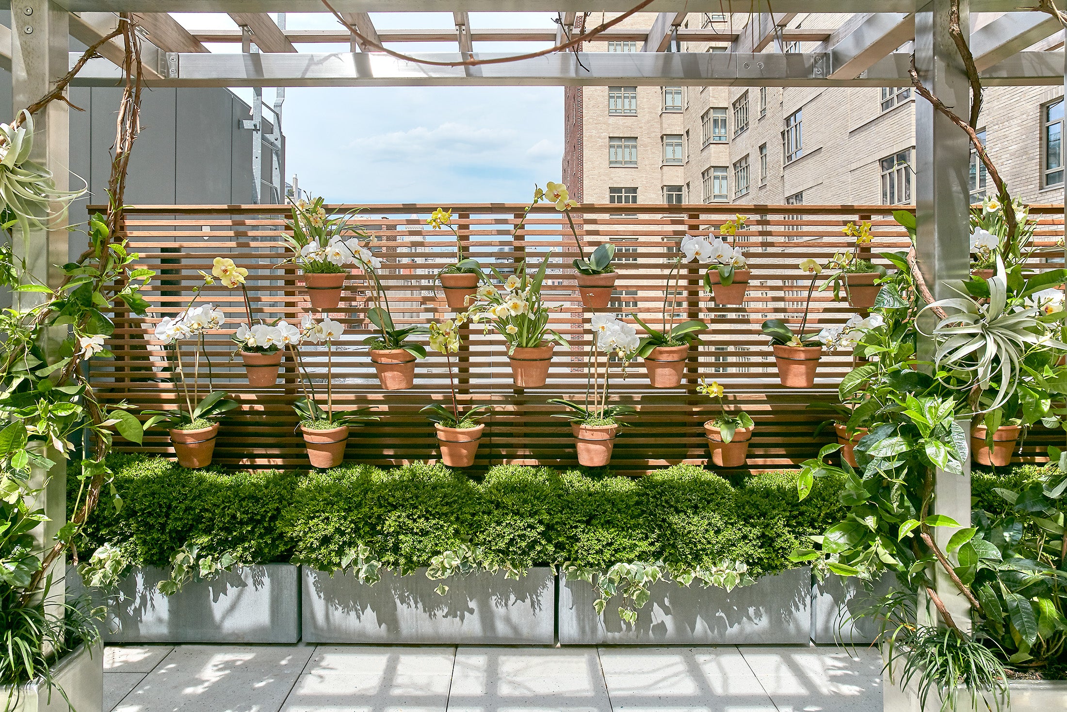 For the 2016 Kips Bay Showhouse, Hollander Design created the perfect urban rooftop garden. They placed Seibert & Rice terra cotta pots around the terrace and mounted our tom pots on a slatted wooden screen for privacy and color.