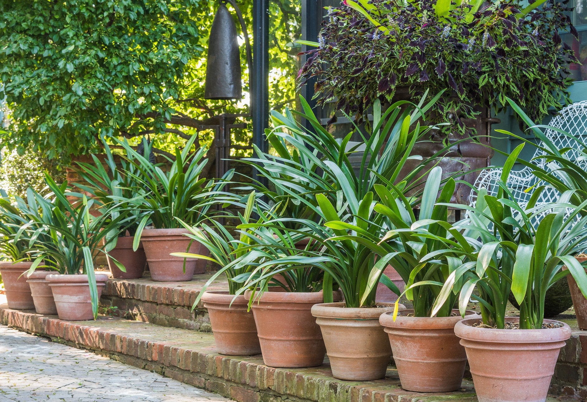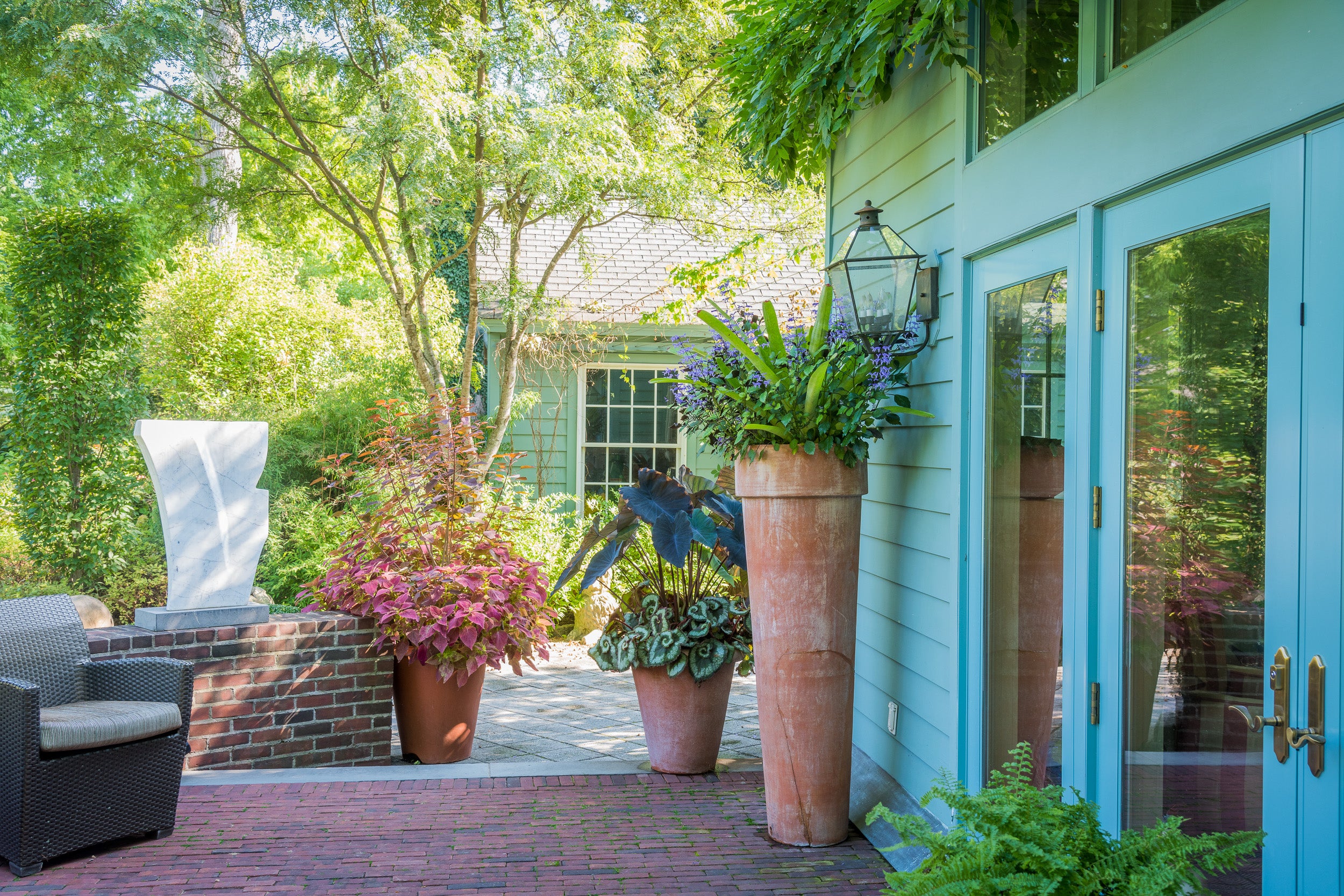 For the last twenty-three years Richard Hartlage has worked with Silas Mountsier and Graeme Hardie on their garden in Nutley, New Jersey. The garden is "a study in green" with four terraces providing space for relaxation and contemplation. Every spring, Silas and Graeme accessorize their garden with fabulous annuals and tropicals planted in their extensive collection of Seibert & Rice Italian terra cotta pots.