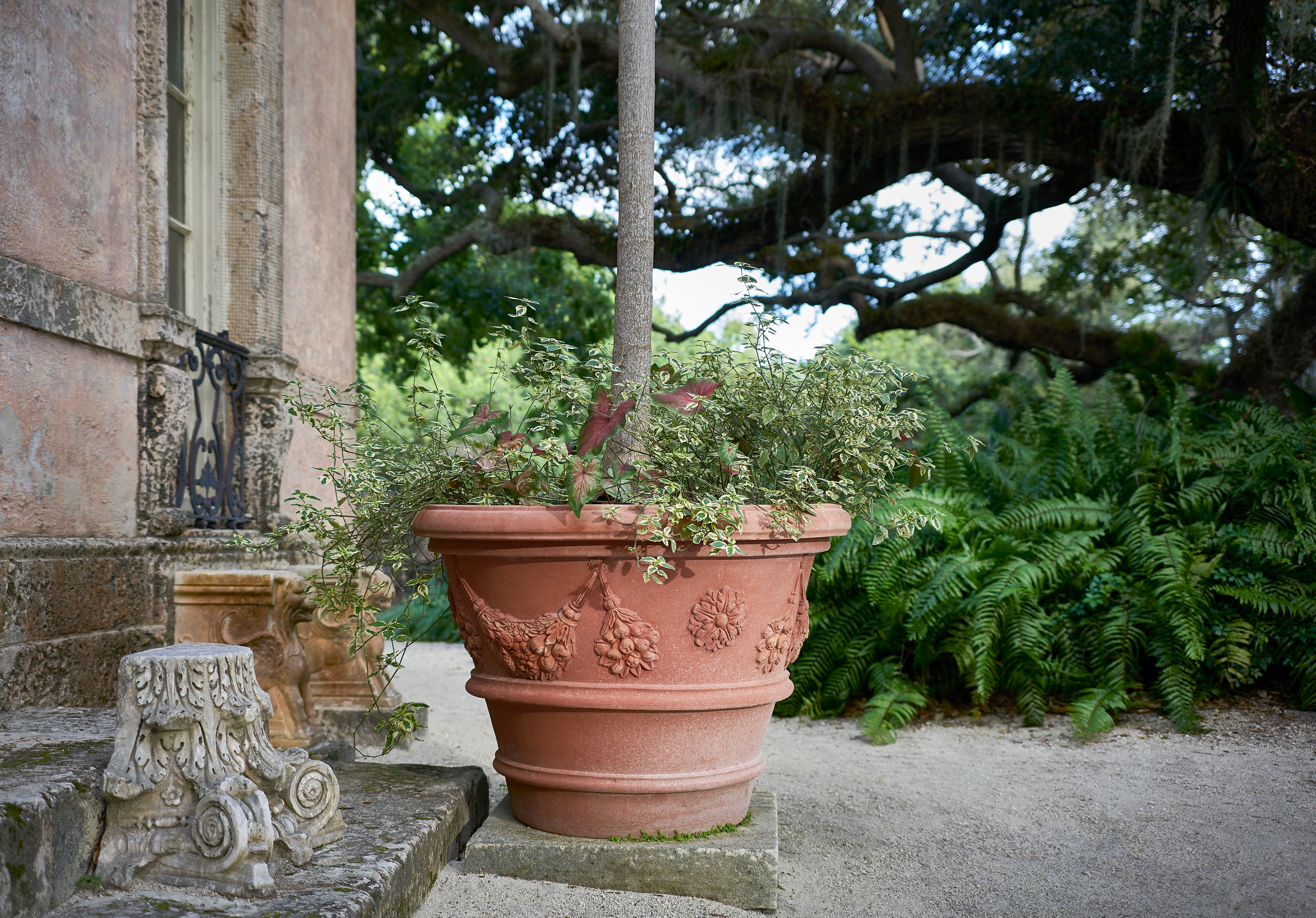 Vizcaya Museum & Gardens is a true gem that sits on Biscayne Bay in Miami. Originally built as the winter home of industrialist James Deering, it is one of the most well preserved remaining estates of the Gilded Age. The magnificent European inspired gardens, originally designed by Diego Suarez, have been restored to their historic magnificence. We worked with Vizcaya's talented staff and examined historical photos of the estate to provide perfect replicas of the terra cotta planters for this historic landscape.