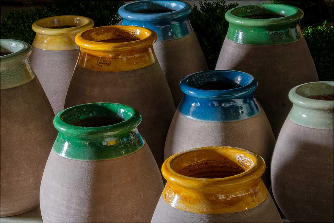 Seibert and Rice is proud to support this time honored tradition and has selected a beautiful range of traditional glazes for our collection. While no longer used for storage and transport, these iconic jars are now elegant decorative elements and planters used in homes and gardens of distinction throughout the world.